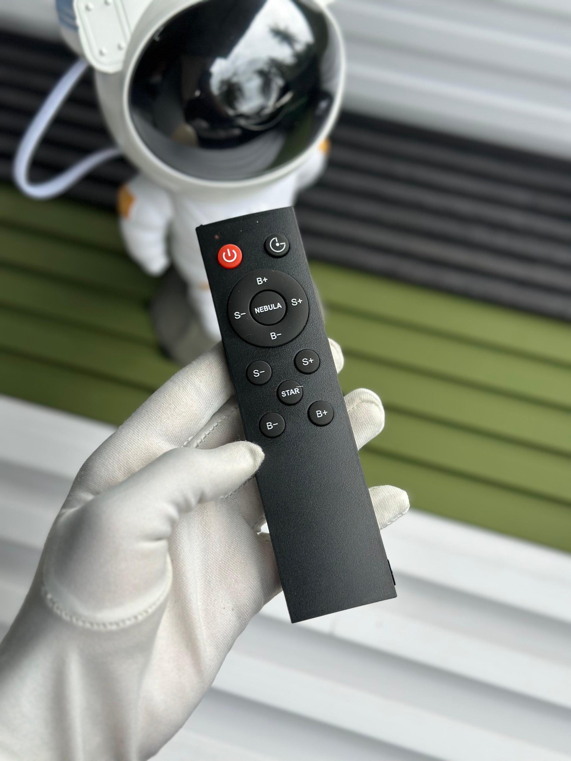 Nordic Astronaut Galaxy Light Projector creates a captivating galaxy in any room with 8 stunning nebula effects and twinkling green stars.